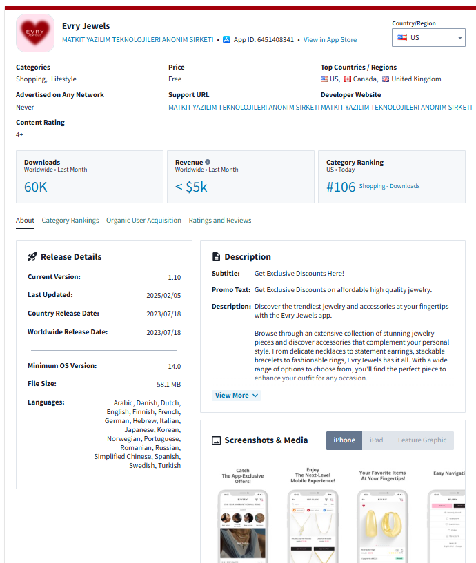 She’s at 60K monthly downloads & at the Top 100 for Shopping