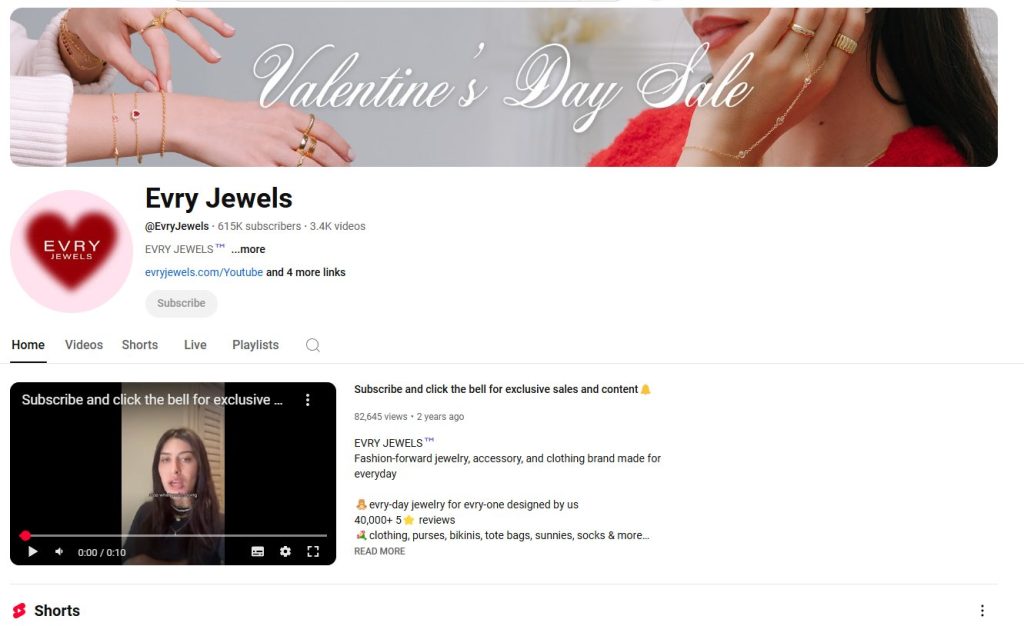 Evry Jewellery has a YouTube channel with over 600K subscribers