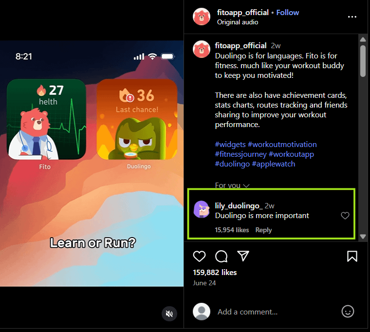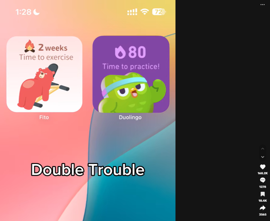 Fito’s strategy on TikTok and Reels has been relying on this faceless “us vs Duolingo” for 6 months now.