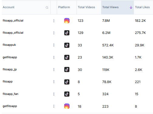 Fito AI just pulled its first 15 million views and reached 20,000 monthly downloads. It seems that there’s still space for Duolingo x Fitness sub-niche: