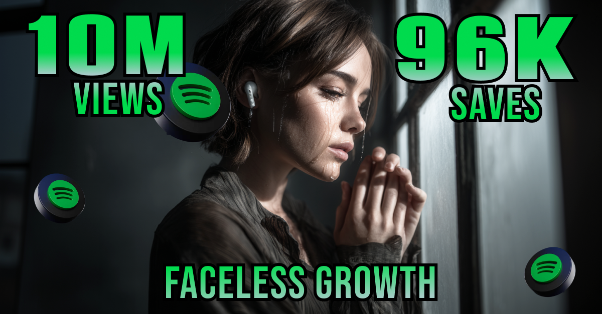 Those three independent accounts are running the exact same faceless strategy, recording their laptops and driving users to Spotify playlists.