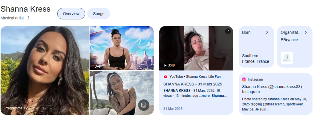 Shanna Kress is a French singer, reality TV star, and YouTuber.