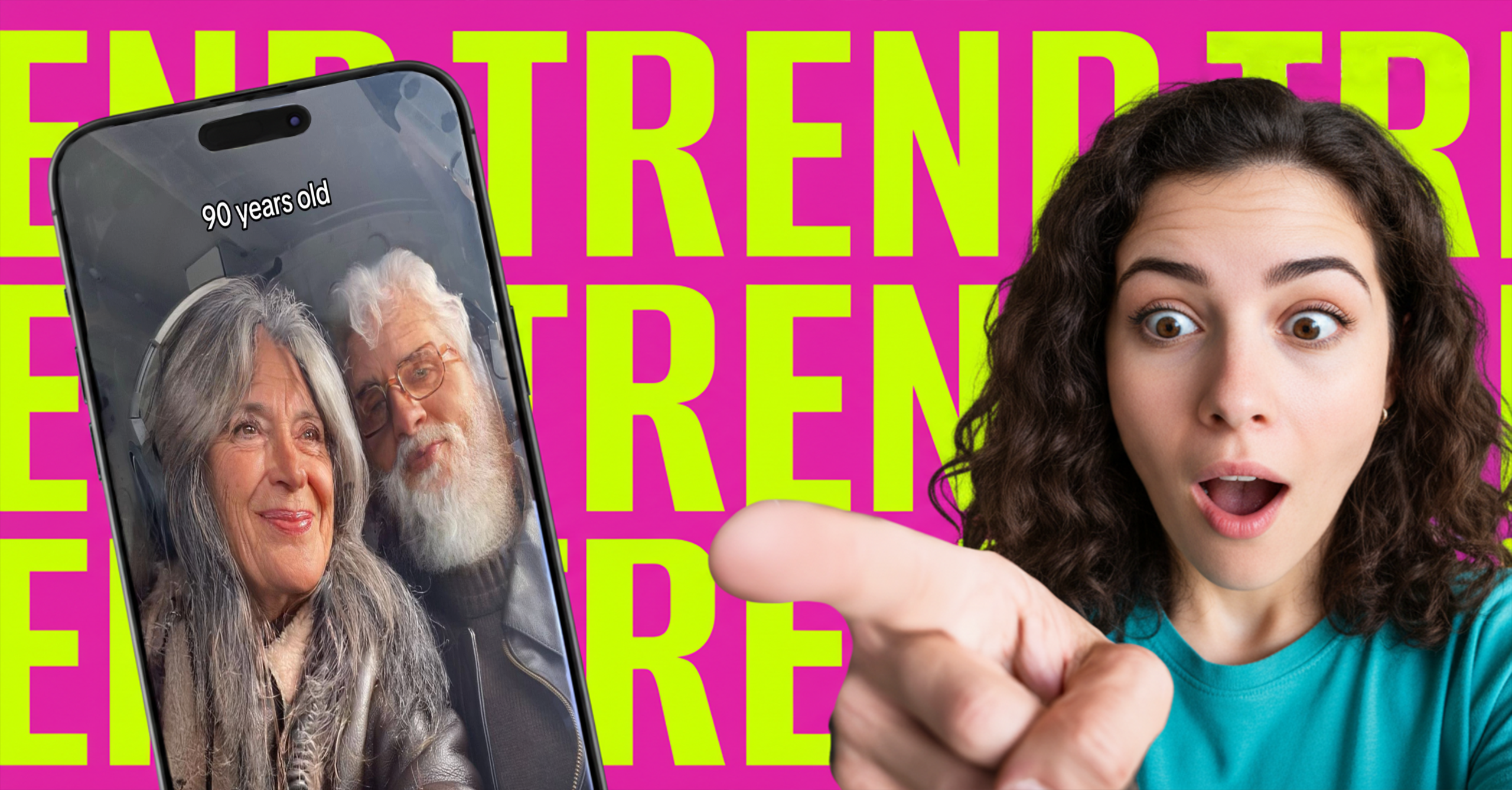 Middle Slides: The response — “Months???” — followed by photos of the couple at different ages and milestones (30, 80, 90 years old), each slide revealing more of their relationship journey.