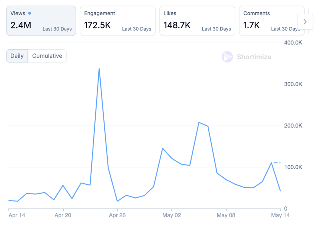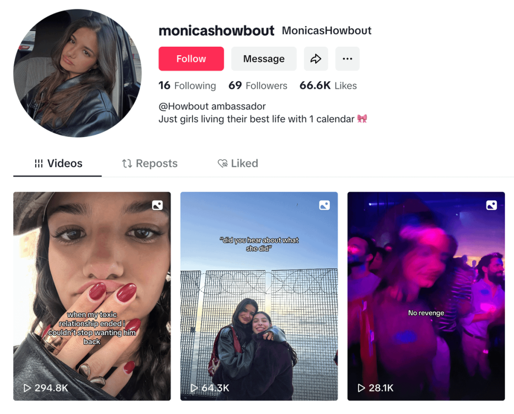 One of their top accounts tt@monicashowbout, has almost 500k views.