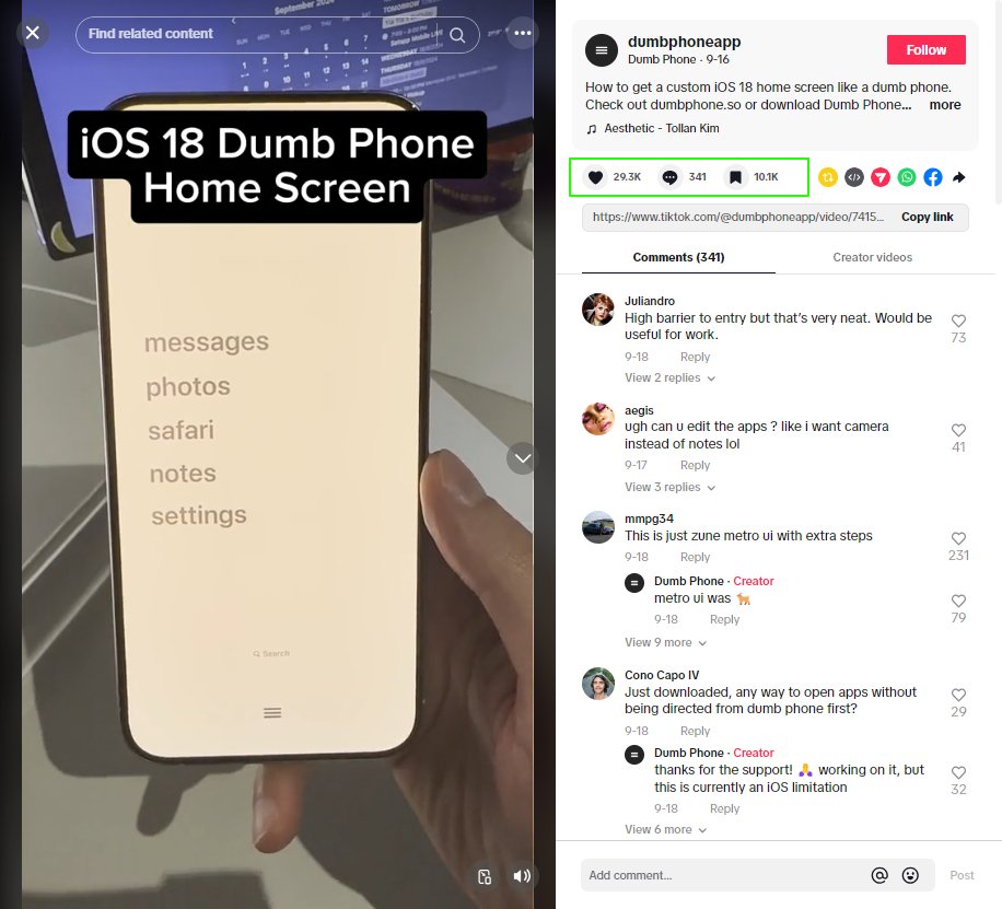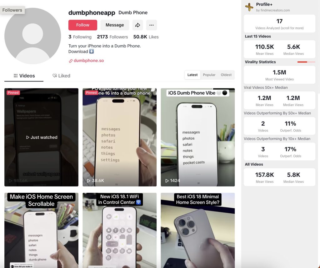 In August, Michael started posting on TikTok (tt@dumbphoneapp):
