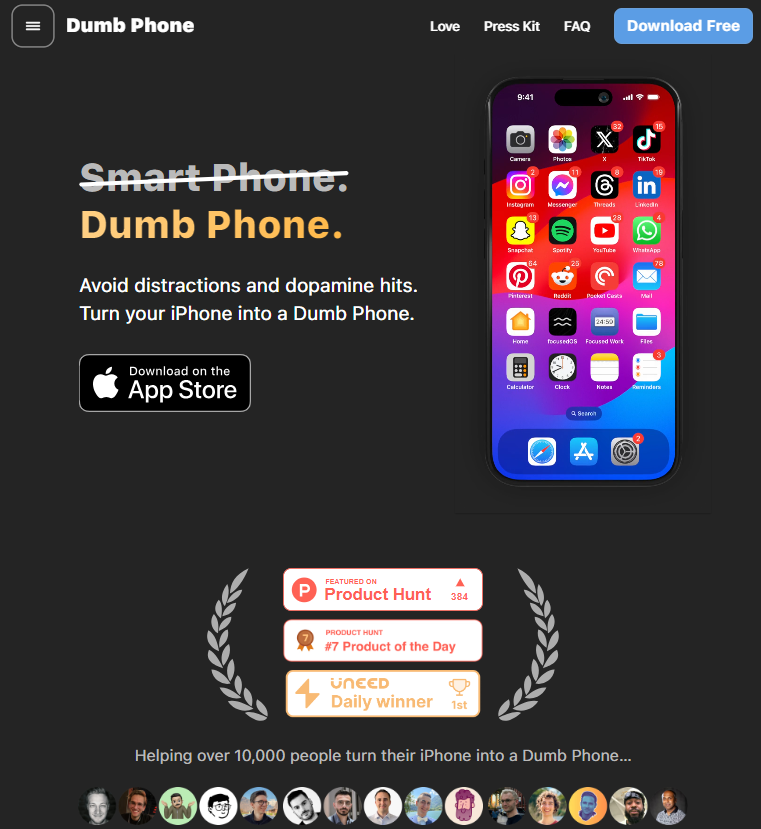 The dumb, minimalistic home screen is different enough that it works as a great faceless hook.