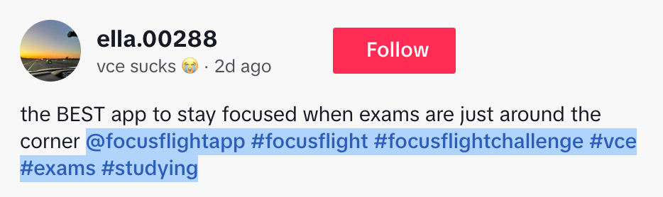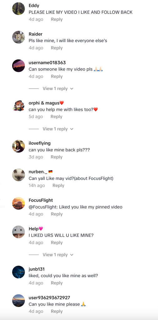 If you look closely, you’ll notice they’re all using the same hashtag and captions: https://www.tiktok.com/tag/focusflightchallenge #focusflightchallenge