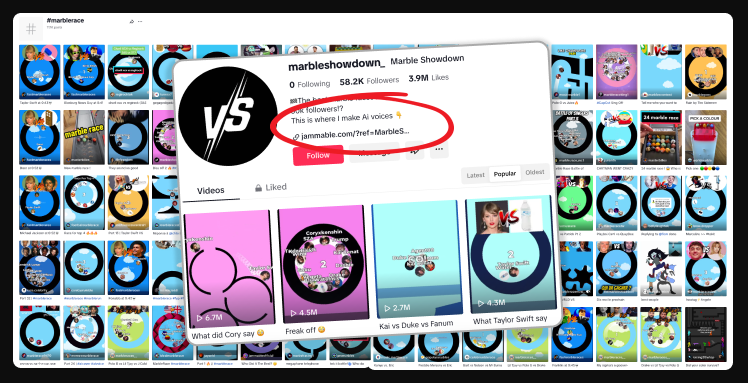 There are 100+ accounts called variations of “marblerace”, posting those EXACT same videos.