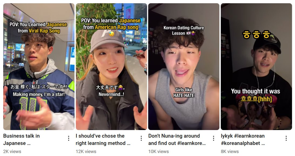 tt@teuida_learnjapanese – single format (female creator, bulk recorded, complete sentences on-screen) => low performance