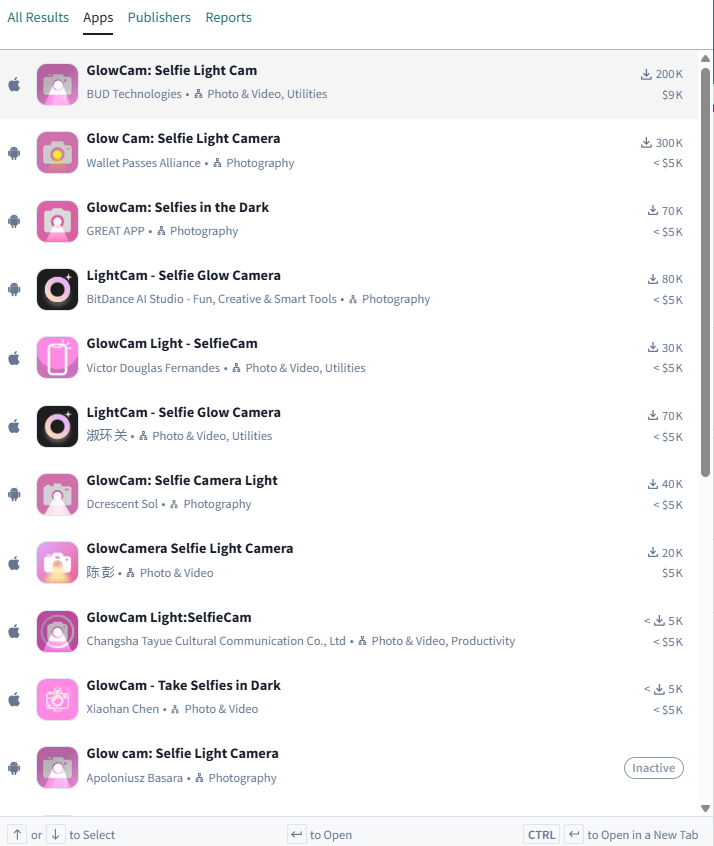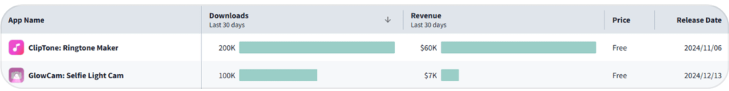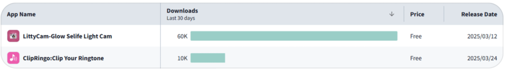 A “Glowcam” copycat has entered the App Store. It was released in March 2025, and it’s already at 60K monthly downloads.