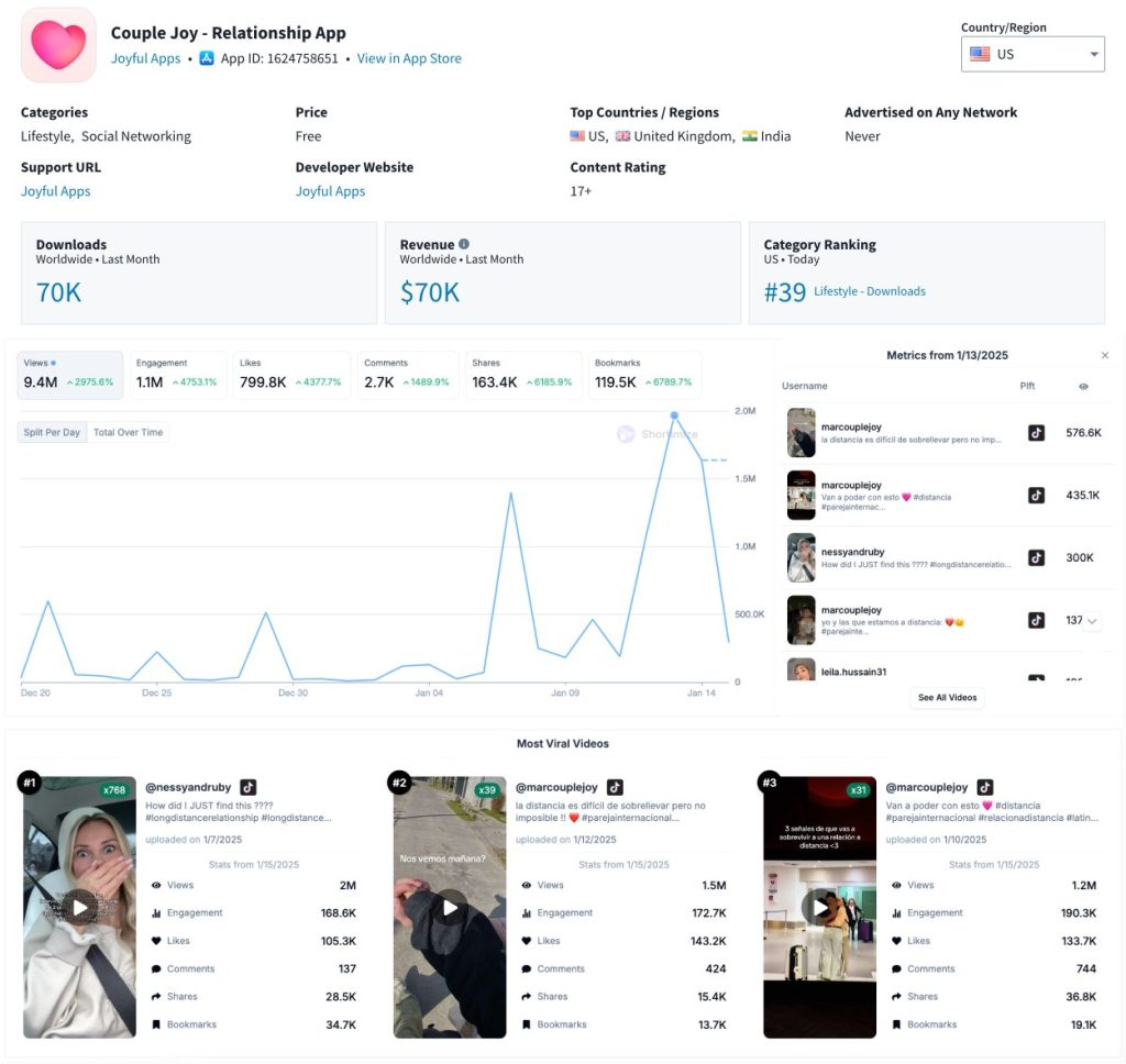 CoupleJoy’s $75K MRR and 80K monthly downloads prove it.