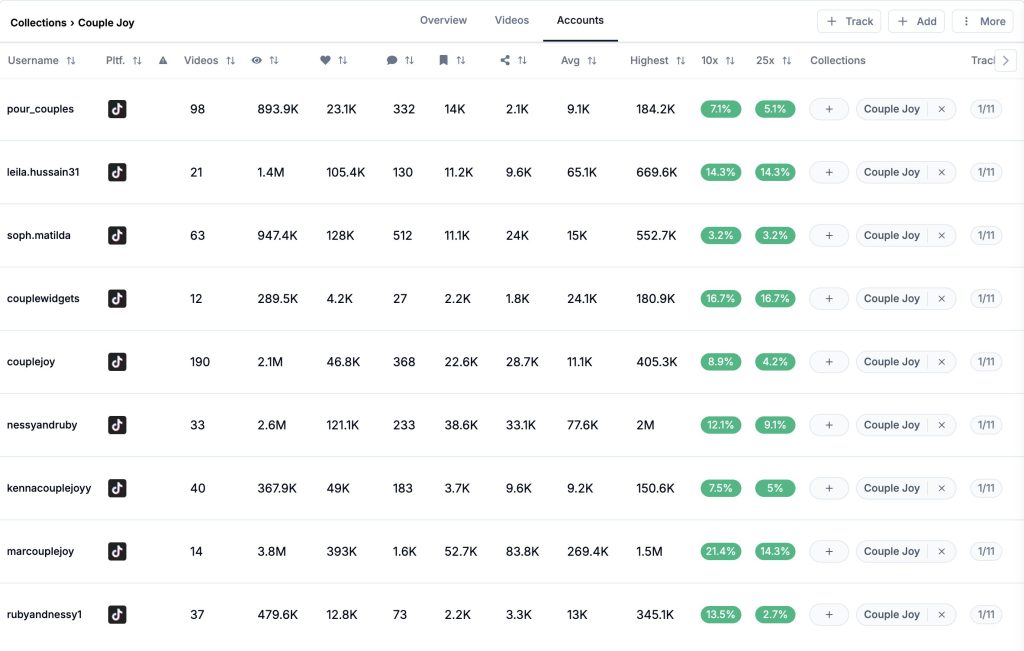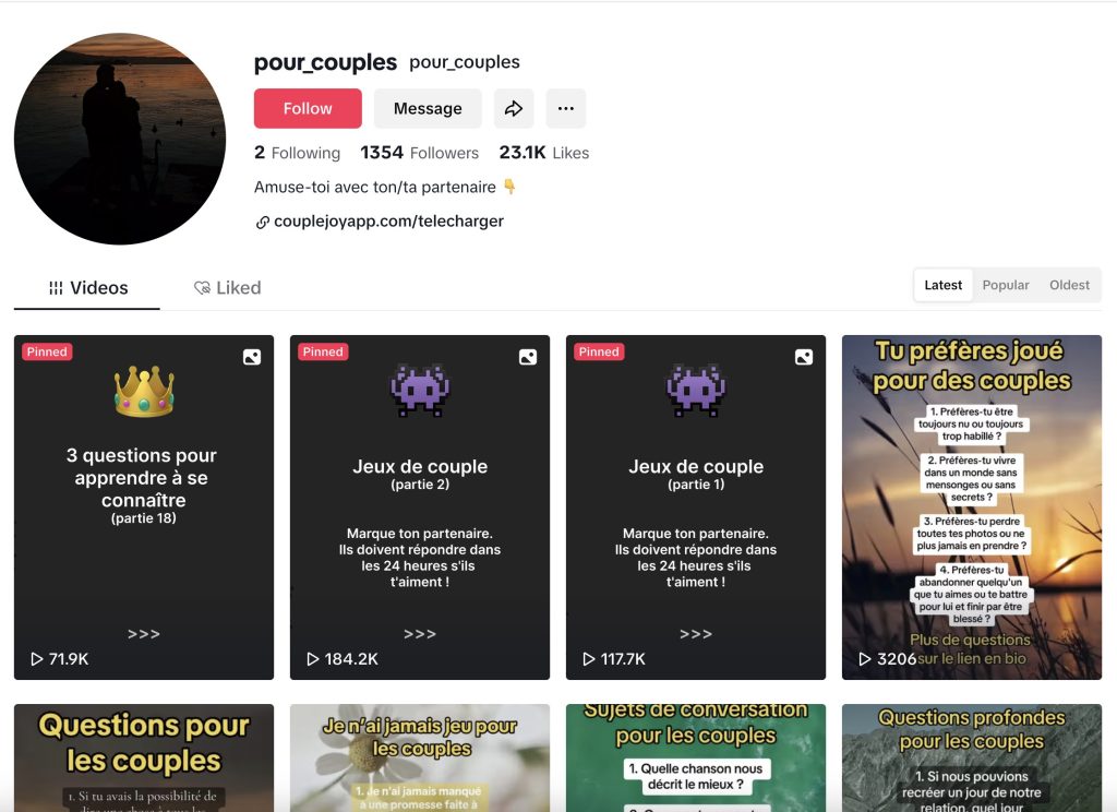 Their main account (tt@couplejoy) doesn’t have much viral/frequent posts.