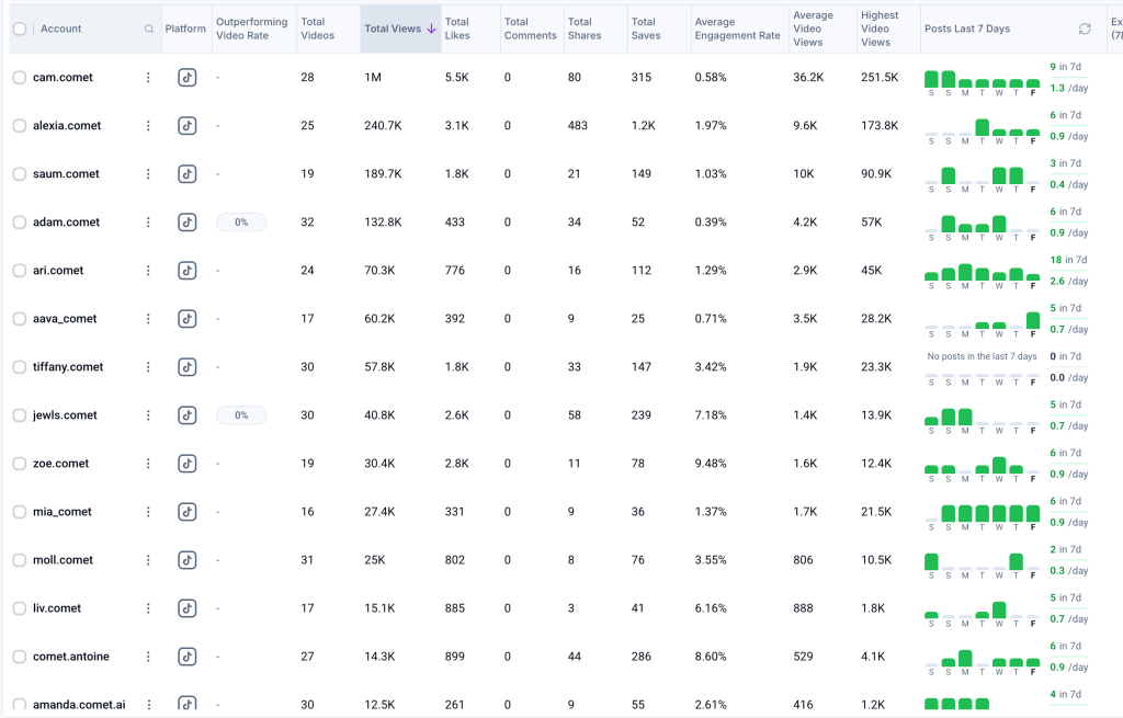 All the other accounts are students directly promoting Comet with, we’d say, not very strong hooks that are too direct and not well crafted yet.