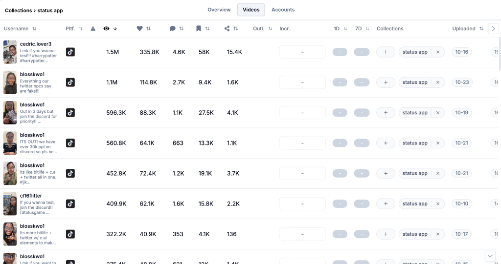 For “status – sims but social media” consumer social app.