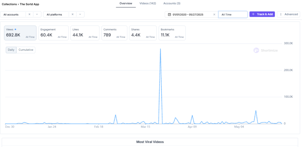 - @thesortdapp on TikTok => 592.2K views, 9.59% engagement rate