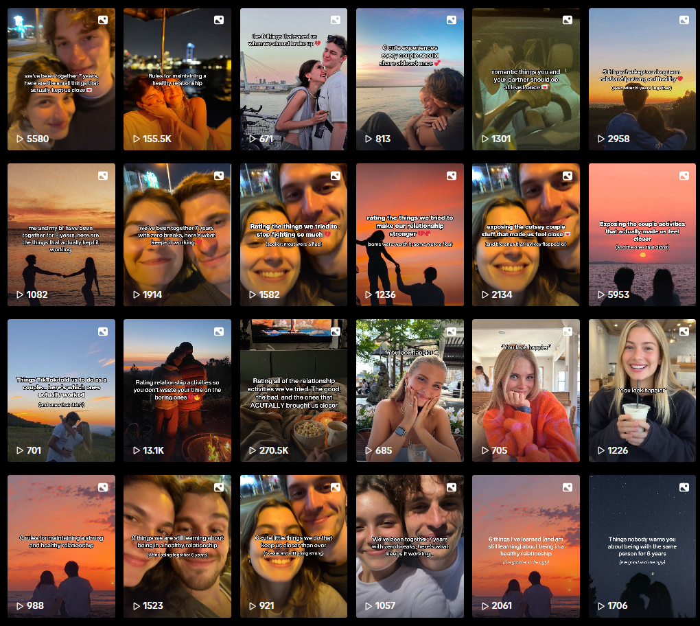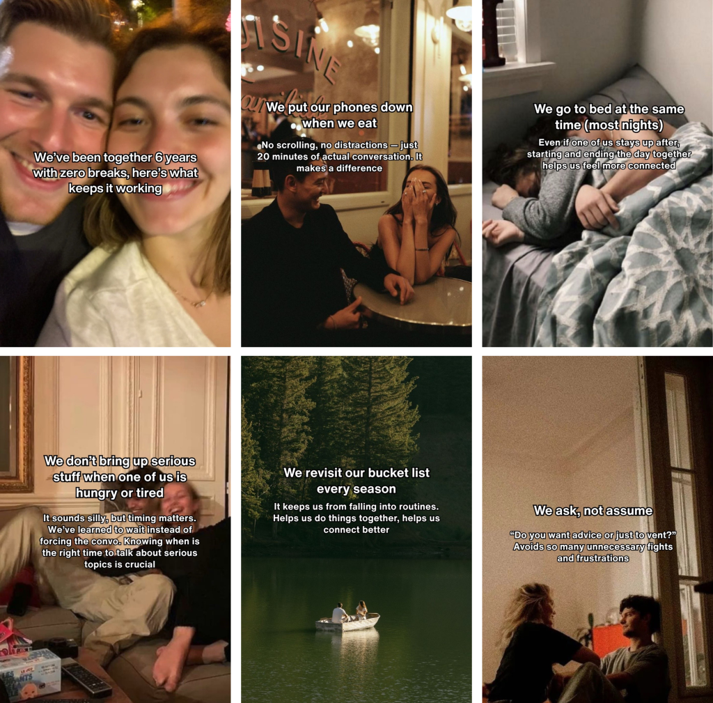 Not all videos show the app at the end. Many give tips on dating and spending quality time in a relationship.