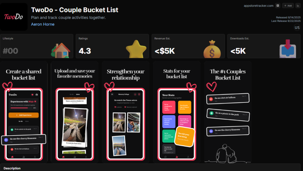 TwoDo app is a couple’s bucket list with plenty of suggestions and the option to create your own.
