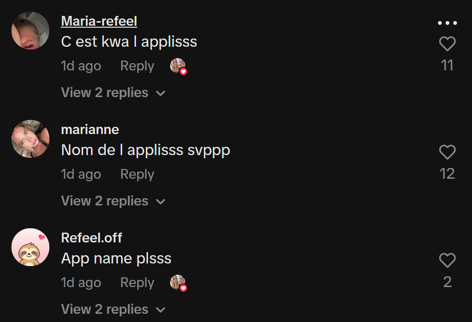 Right after posting, their other accounts comment things like “What’s the app called?”