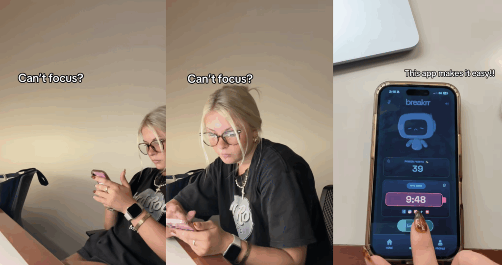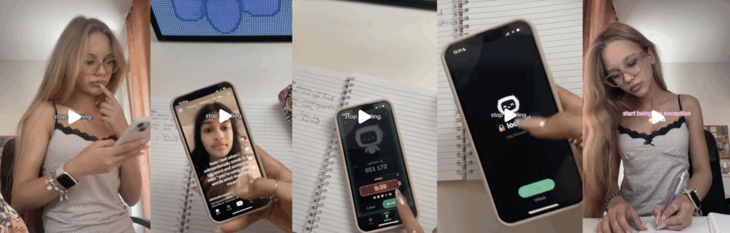 This video shifts the focus away from scrolling and instead highlights the person’s concentration and how the app helps with it.