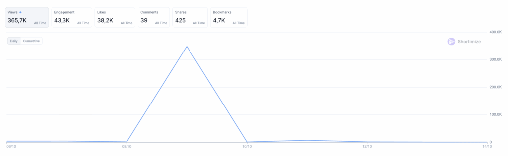 The other dedicated creators reached a total of 365.7K views, but it’s worth noting the very first video only went live on October 6th.