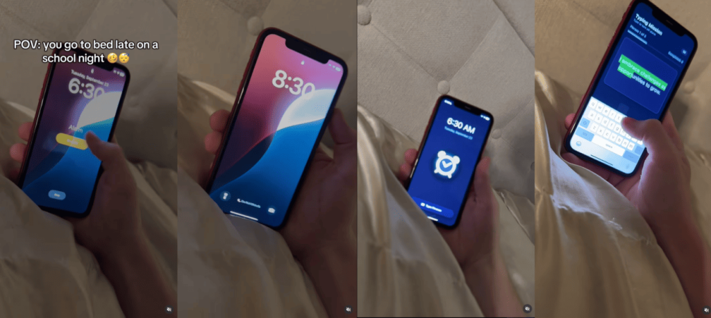 “POV: you got to bed late on a school night” 1.5M views / Sep. 23