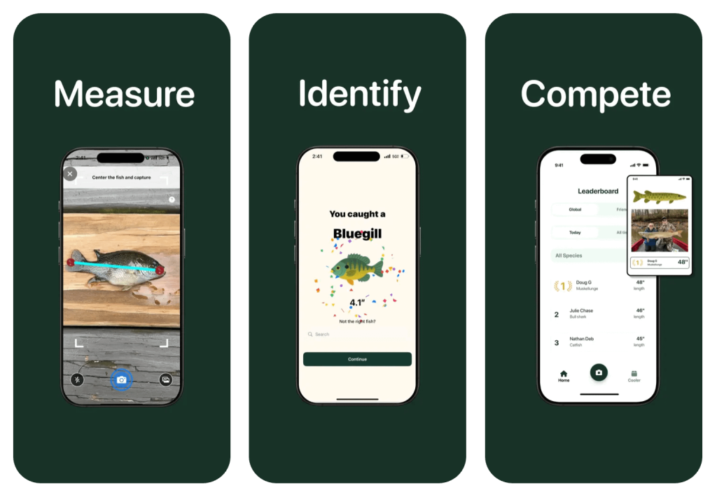 All start by showing the founder fishing and catching something, then uploading a picture on the app to identify and save it.