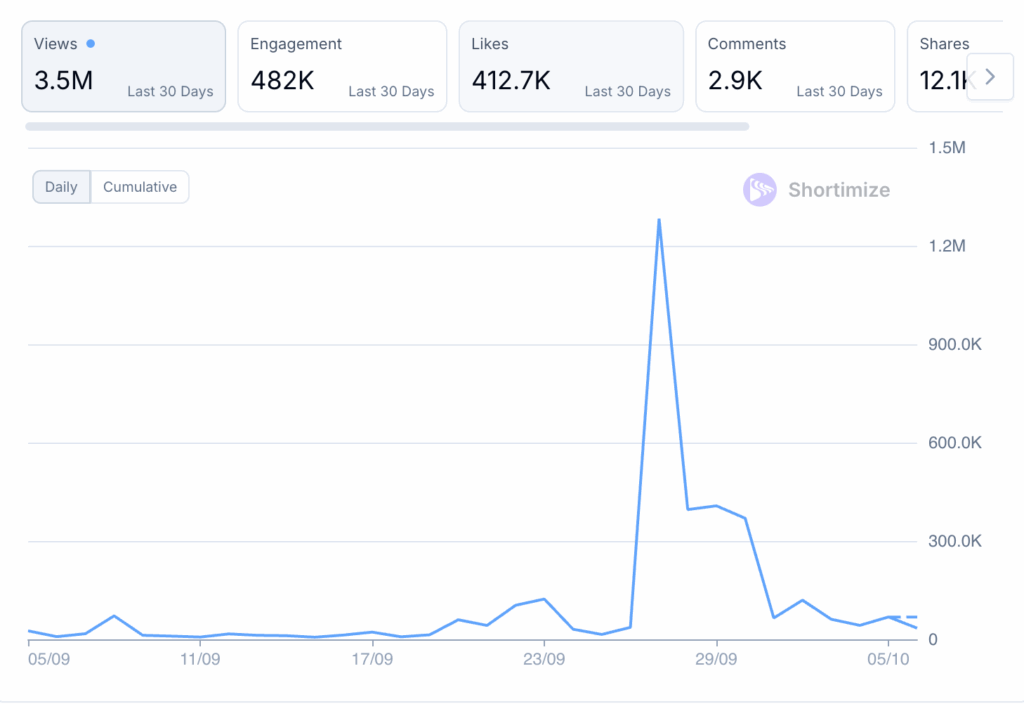 In the last 30 days, they pulled 3.5 M views with two different types of videos