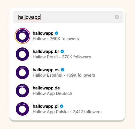 2 accounts => @hallowapp (main) + @hallowapp.br (Brasil)