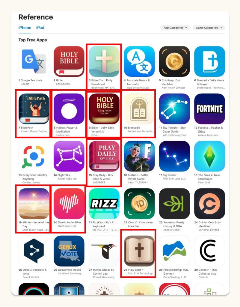 I’ve covered multiple other Bible app apps in the last Christian Tok thread. You can spot at least 12 of them in the top 40. BiblePath just hit #7 & it was pushed to the AppStore June 6th. Some of them crushing with short form video content.