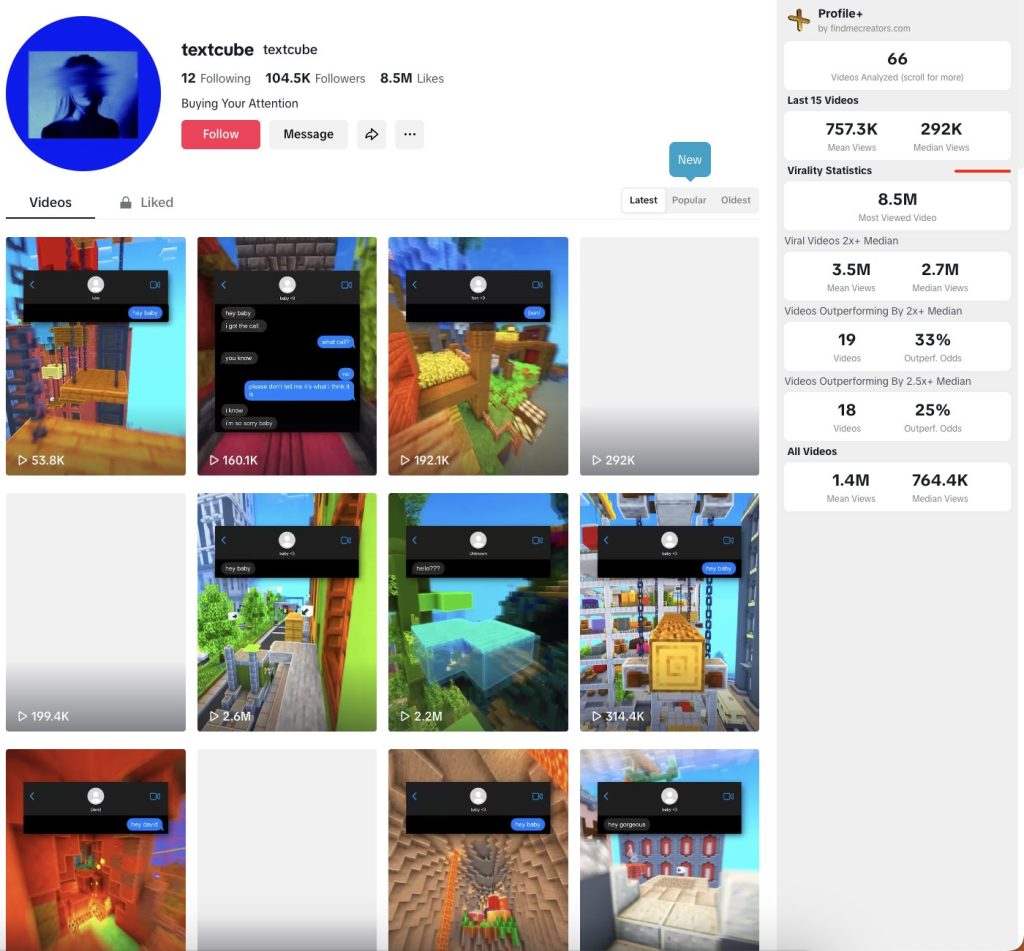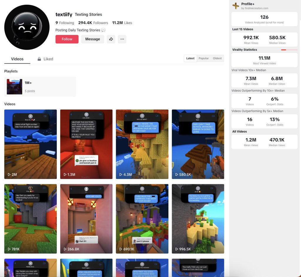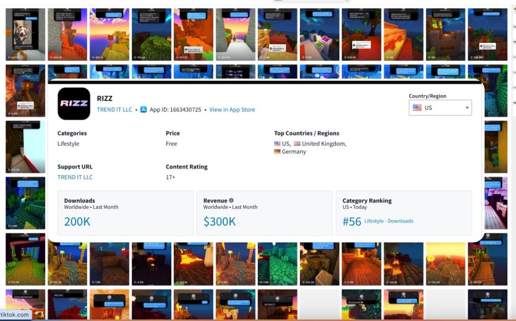 RIZZ App’s faceless b-roll TikTok video strategy is marketing MADNESS. They’ve garnered 550,000,000 views across 15+ TikTok accounts, with an average of 450K views per video.