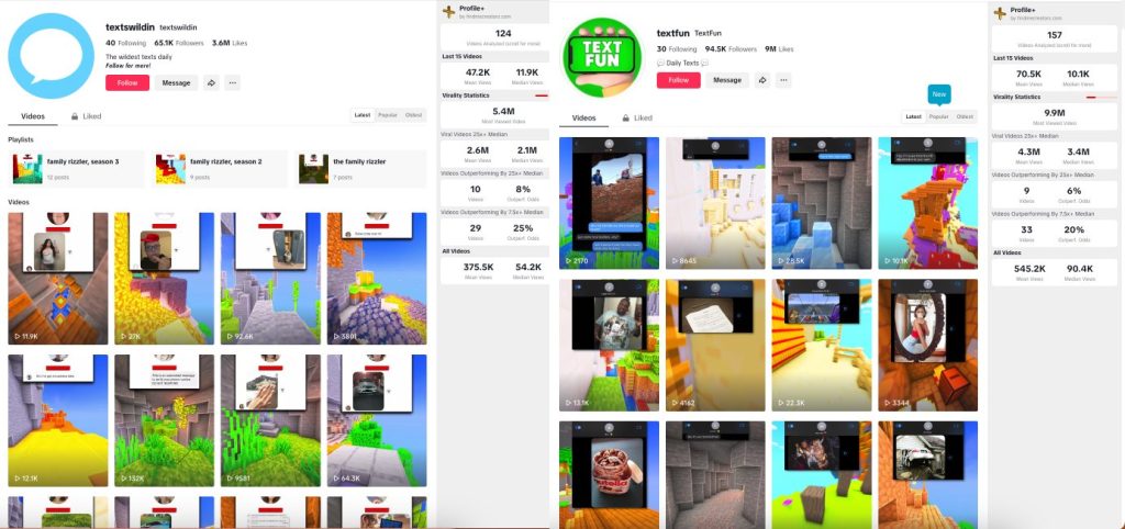 And then I also found these accounts: @textfun and @textswildin. Which together have 126,000,000 views. And they promote another app called Plug AI, using the same strategy: