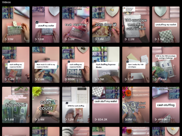 Cash stuffing is when people place money into differently labeled envelopes, like entertainment, groceries, rent, etc. While recording yourself doing this is new, using envelopes to budget has been around for a long time.
