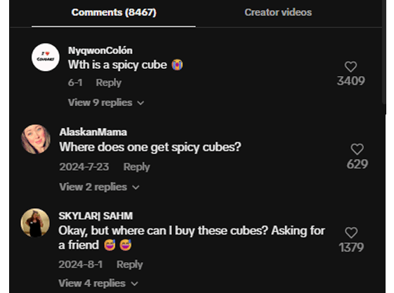 Others bite the bullet and start wondering what Spicy Cubes are and where to get them.