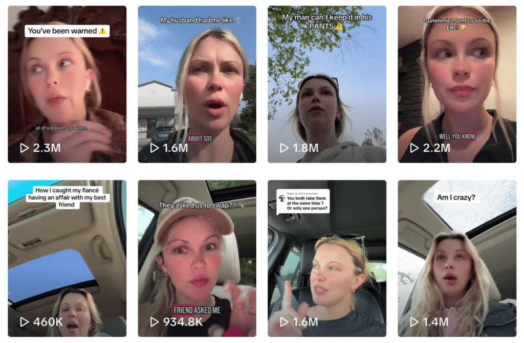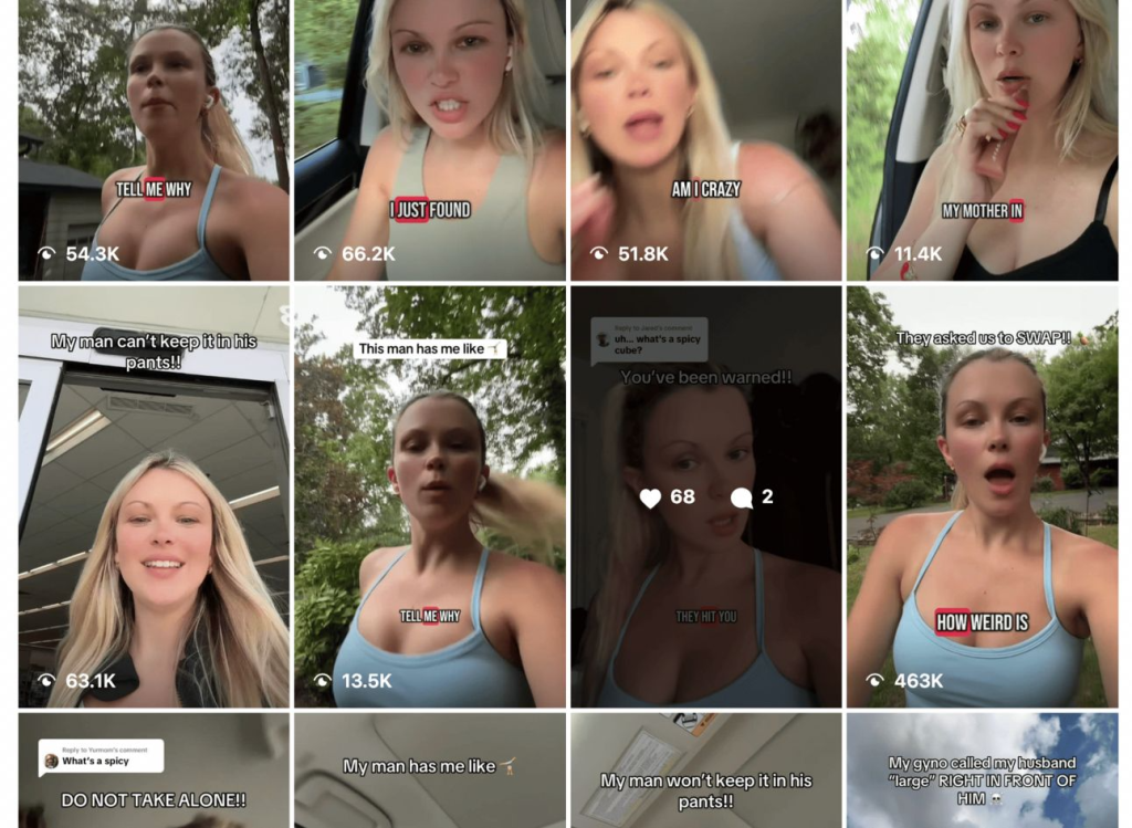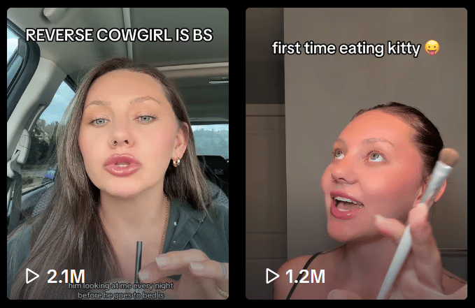 Each video runs roughly a minute. She spins her wild sex stories into bite-size story times, basically an adult “get ready with me while I tell you…”.