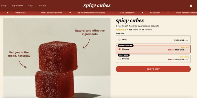 An e-commerce brand that sells bite-sized, chili-coated gummy “cubes” as a natural aphrodisiac.