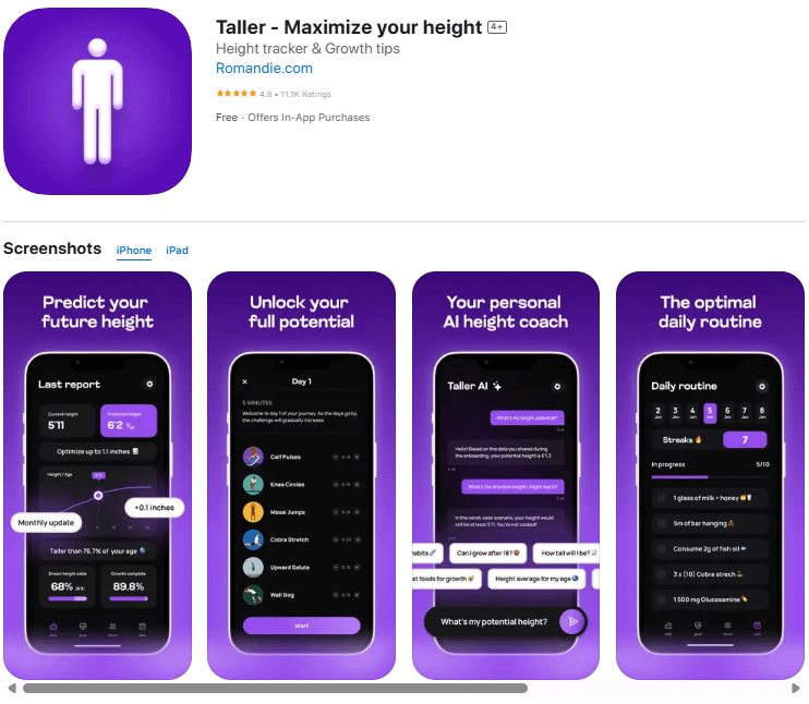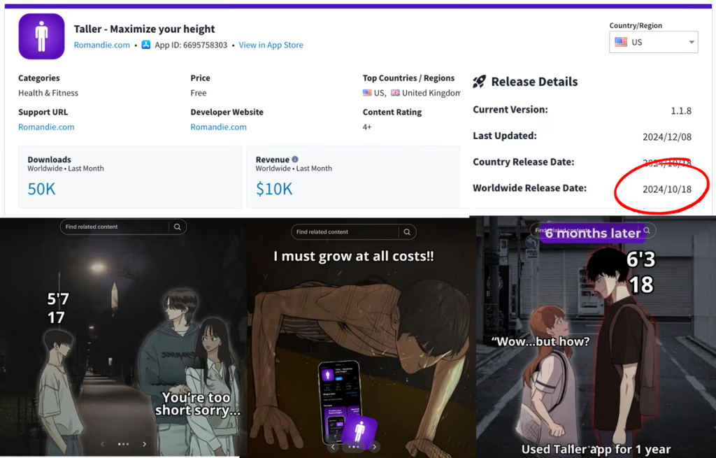 Early creative was all about a faceless “how to get taller” 4:4 format that scraped views but apparently underperformed on conversion (our assumption), so the team quickly moved on.