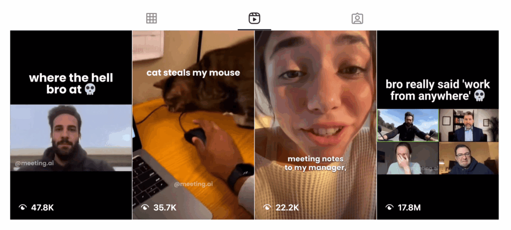 This app just launched a new account: https://www.instagram.com/meeting.ai/reels/.