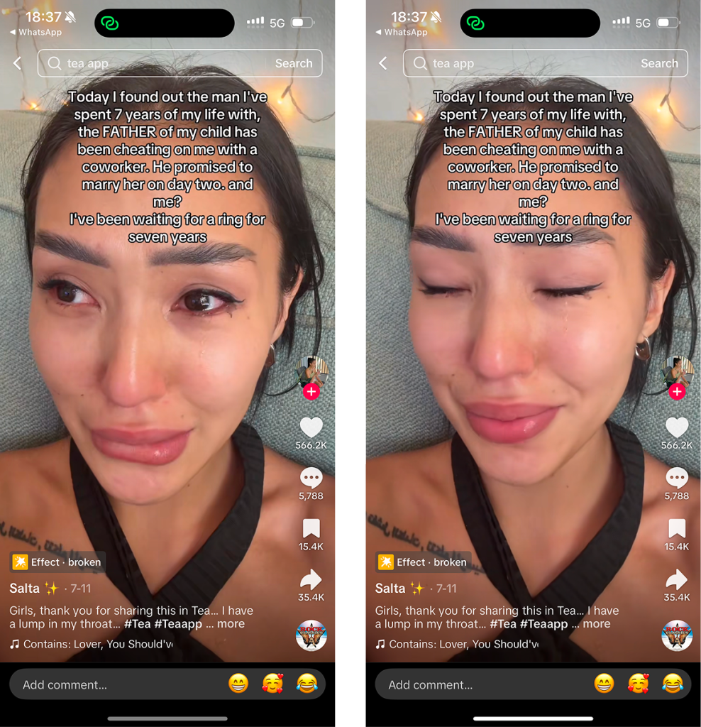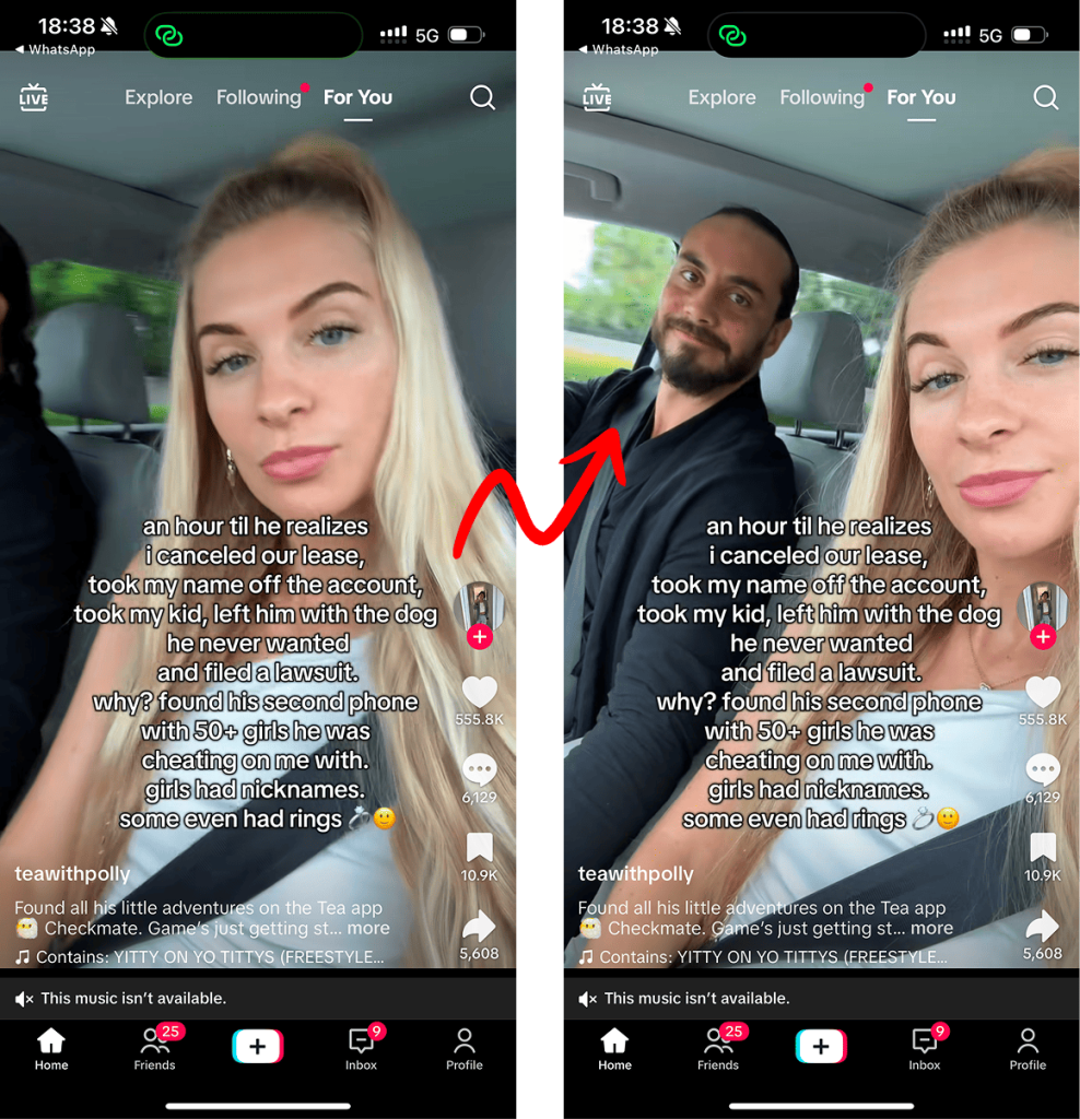 This is a format from CheaterBuster, which we covered in our in-depth study here. It got 1.2 million views on her account and is her most successful video.