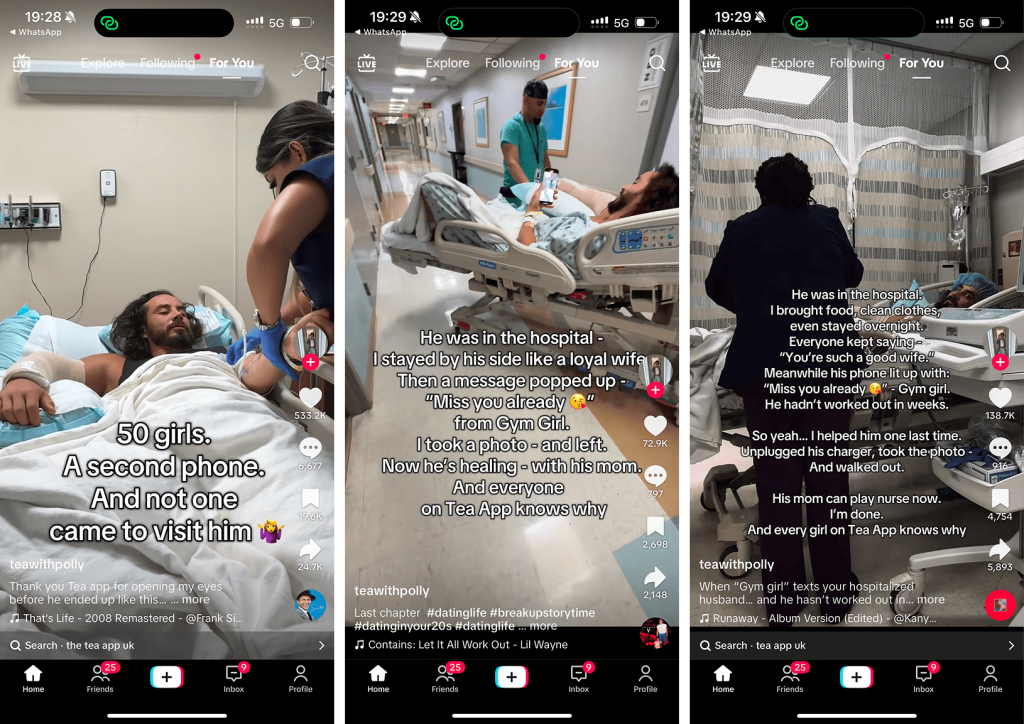There is no real limit to those stories. This account posted three viral videos about her boyfriend being in the hospital.