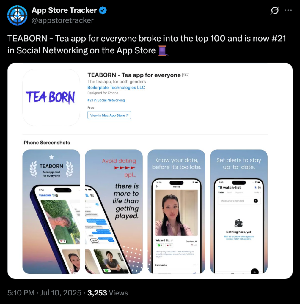 Tea’s moat is that it managed to be in the App Store, which gives it higher credibility and helps it rank #1 here.