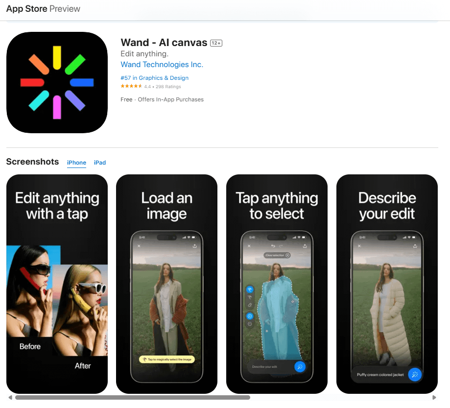 The concept of Wand-AI Canvas is that is uses AI and allows you to edit or draw anything you want into a photo. Their website states – “From sketch to fully rendered with AI in seconds”.