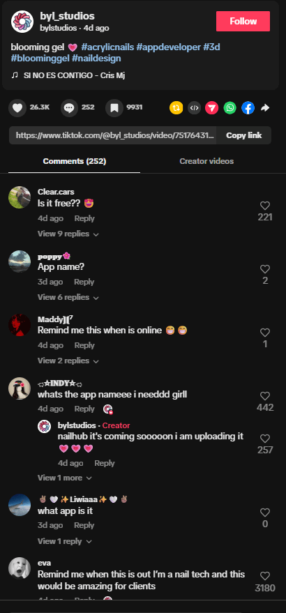 This account, tt@byl_studios, started posting on TikTok pre-launch: