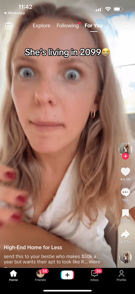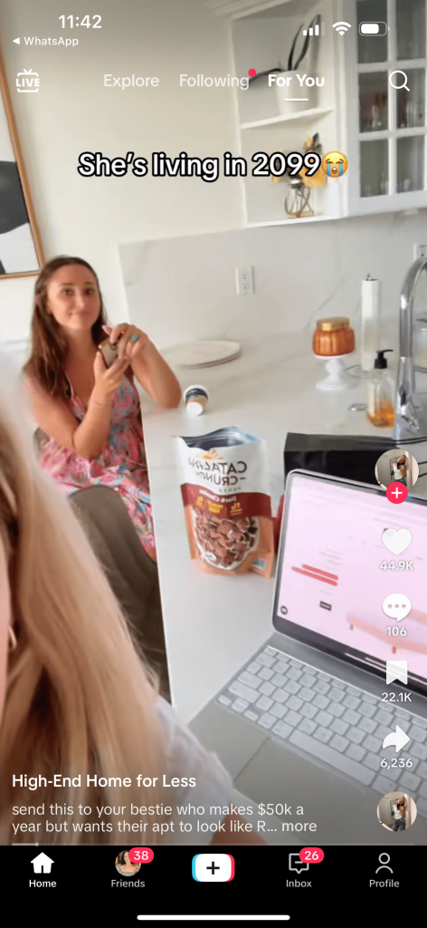 In the second frame, the camera quickly turns to the “best friend” (she calls her best friend), although I assume it’s actually her sister (later we see the mother). This adds real-life context and makes the content feel original and authentic.