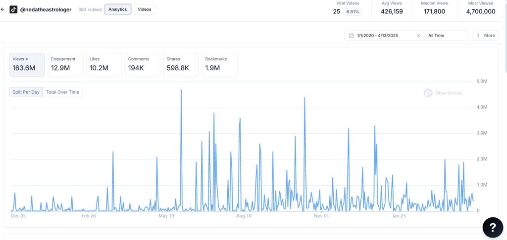 In 18 months she did 163,600,000 views. With a recurring viral rate.