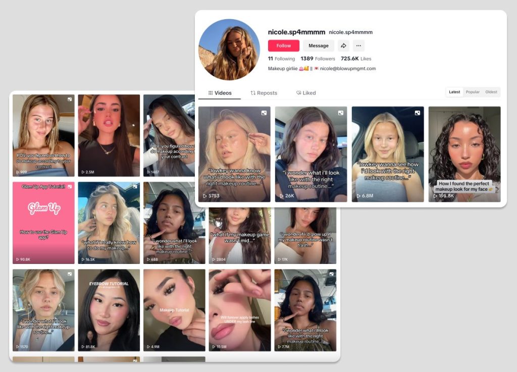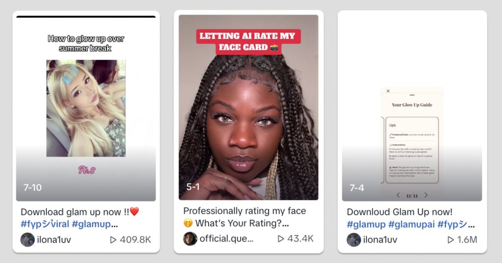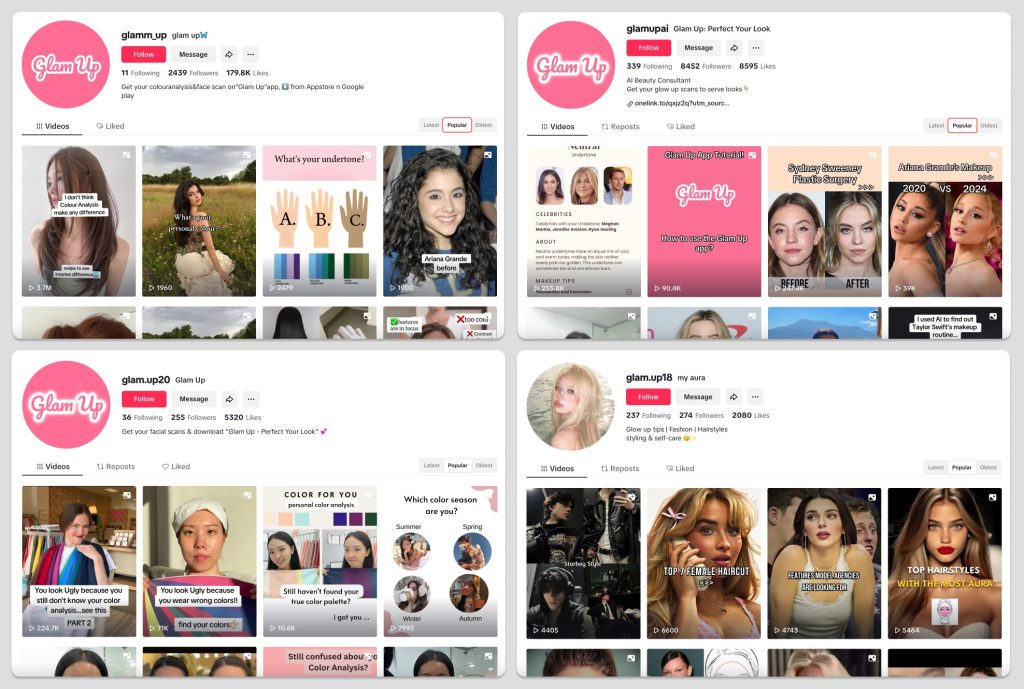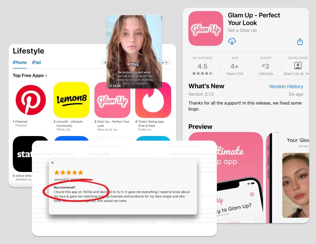 Glam Up hit #3 in the Lifestyle category on the App Store, beating Tinder, Hinge & co. I decided to dig into their TikTok strategies.