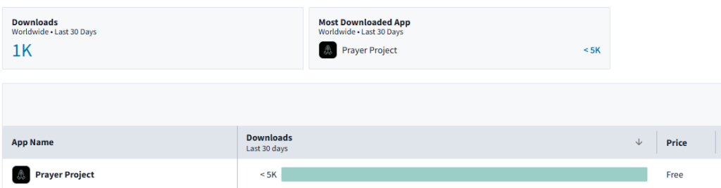 40 days ago, Prayer Project was released on the App Store & Google Play and last month it had 1,000 downloads.
