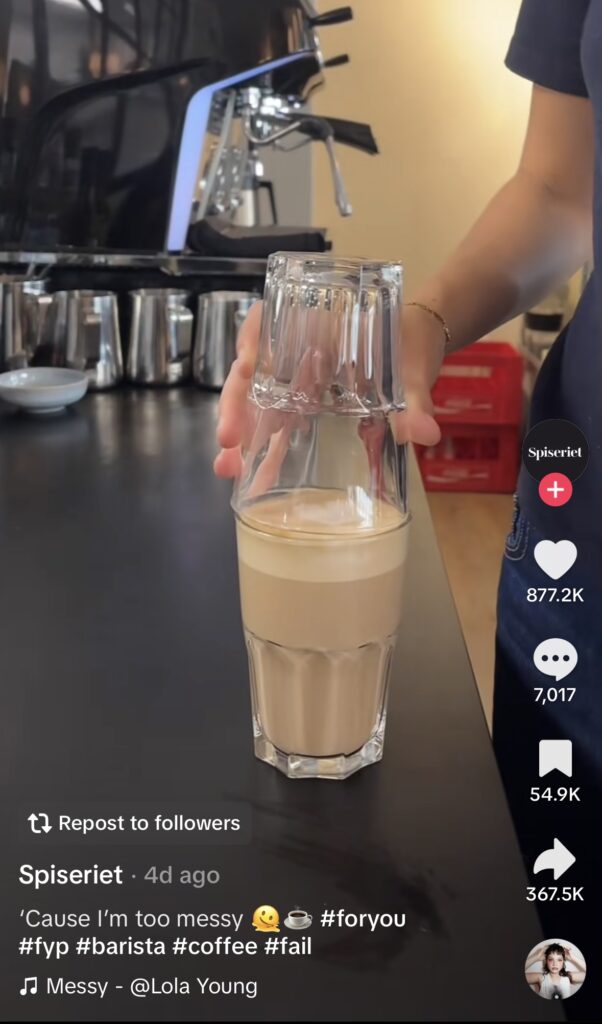 This video starts like every aesthetic café reel, but ends with a latte explosion across the counter.