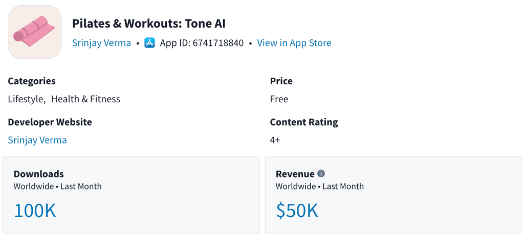 The growth wasn’t just about views. Last month, downloads hit 100K, and monthly revenue is now over $50K, though that is probably a low estimate.