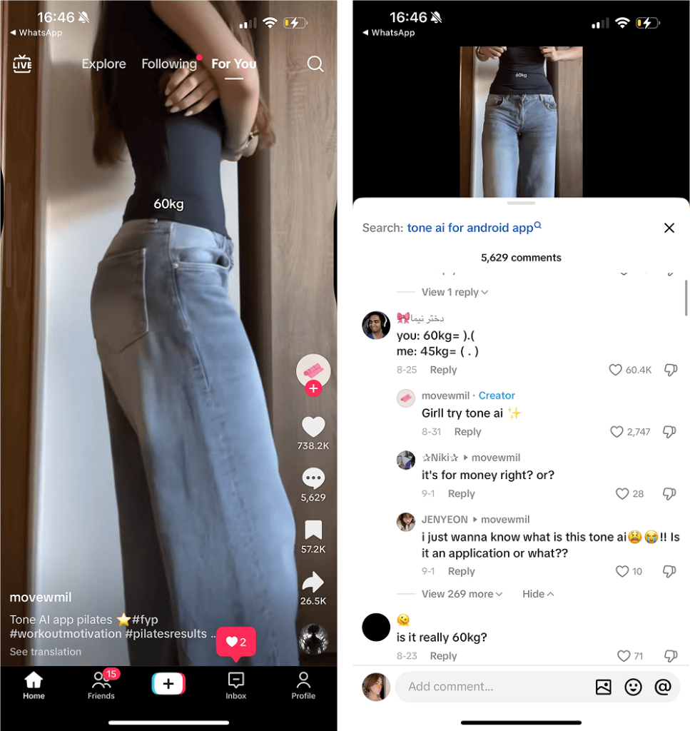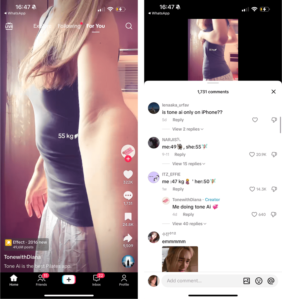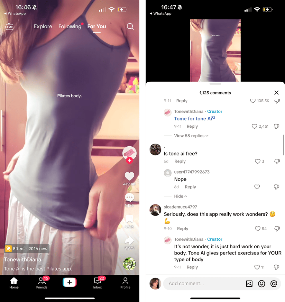 But once you’re hitting that kind of scale, top-of-funnel moments start adding up. Someone clicks the bio, catches a mention in the caption, or sees a comment about ToneAI and decides to check out the app.