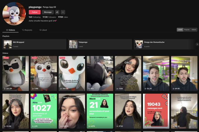 On Pengu’s page (tt@playpengu). They used the account’s existing juice to do: 12 videos in 5 days and made 961,786 views & good engagement.
